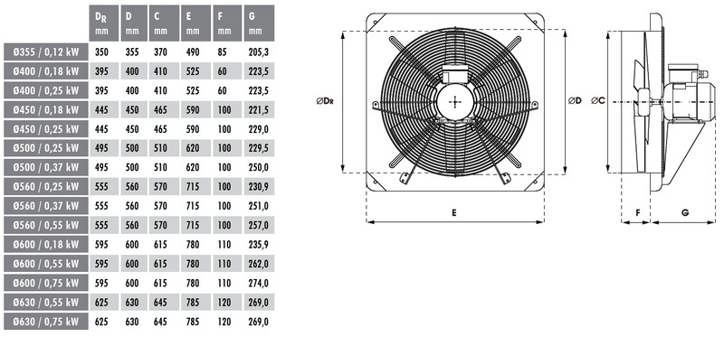 | Galia (kW): | 0.55 |